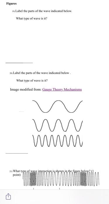 PDF WORKSHEET - LABELING WAVES - Physical Science Anatomy of a Wave Worksheet Objective: Identify the parts of a wave and draw your own diagrams of waves. Background: Many types of waves exist, including electromagnetic waves and mechanical waves. Waves move in different ways and have different properties. Part 1 In the diagram below, identify the parts of a wave by using the provided definitions.