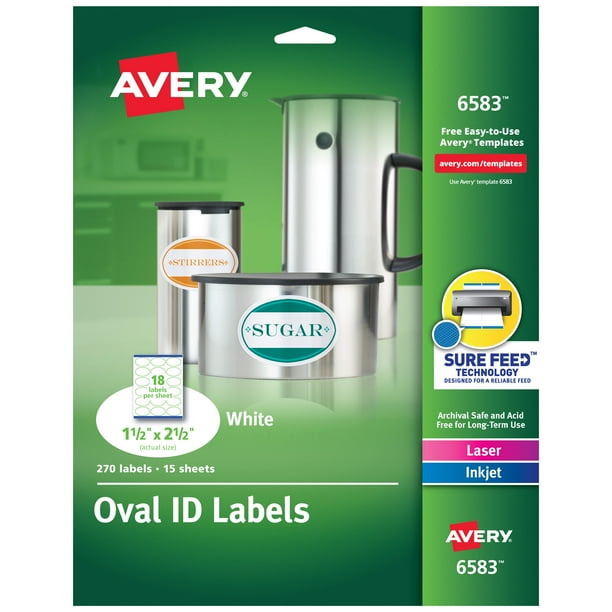 Avery Printable Blank Oval Labels, 1.5"x 2.5", White Dissolvable, 90 ... Labels with Sure Feed technology are designed for a reliable feed through your printer. Easy to customize with free templates and designs using Avery Design amp; Print. Print on 8.5quot; x 11quot; sheets with a pen, pencil, marker, laser/inkjet printer. Shape: Oval Label Size - text: 1.5 x 2.5 Label Colors: White Color Family: White.