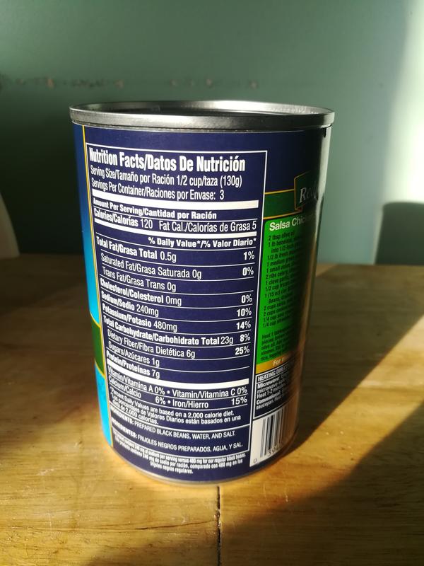 Nutrition Facts for Bush's Best Black Beans • MyFoodDiary® Nutrition Facts for Bush's Best Black Beans • MyFoodDiary® Bush's Best Black Beans Canned Nutrition Facts Serving Size cup 0.5 cup = 130g Amount Per Serving 110 Calories % Daily Value* 0% Total Fat 0g 0% Saturated Fat 0g Trans Fat 0g 0% Cholesterol 0mg 20% Sodium 450mg 7% Total Carbohydrate 20g 18% Dietary Fiber 5g Total Sugars 0.5g 0%