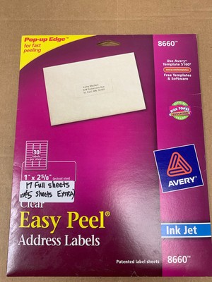 › en › avery-easy-peel-address-labelsAvery Address Labels - 8660 - 30 labels per sheet Avery Clear Easy Peel Address Labels for Inkjet Printers 8660. Create multiple labels in minutes using the free templates and designs available with our Avery Design and Online Software. Avery Address Labels - 8660 - 30 labels per sheet