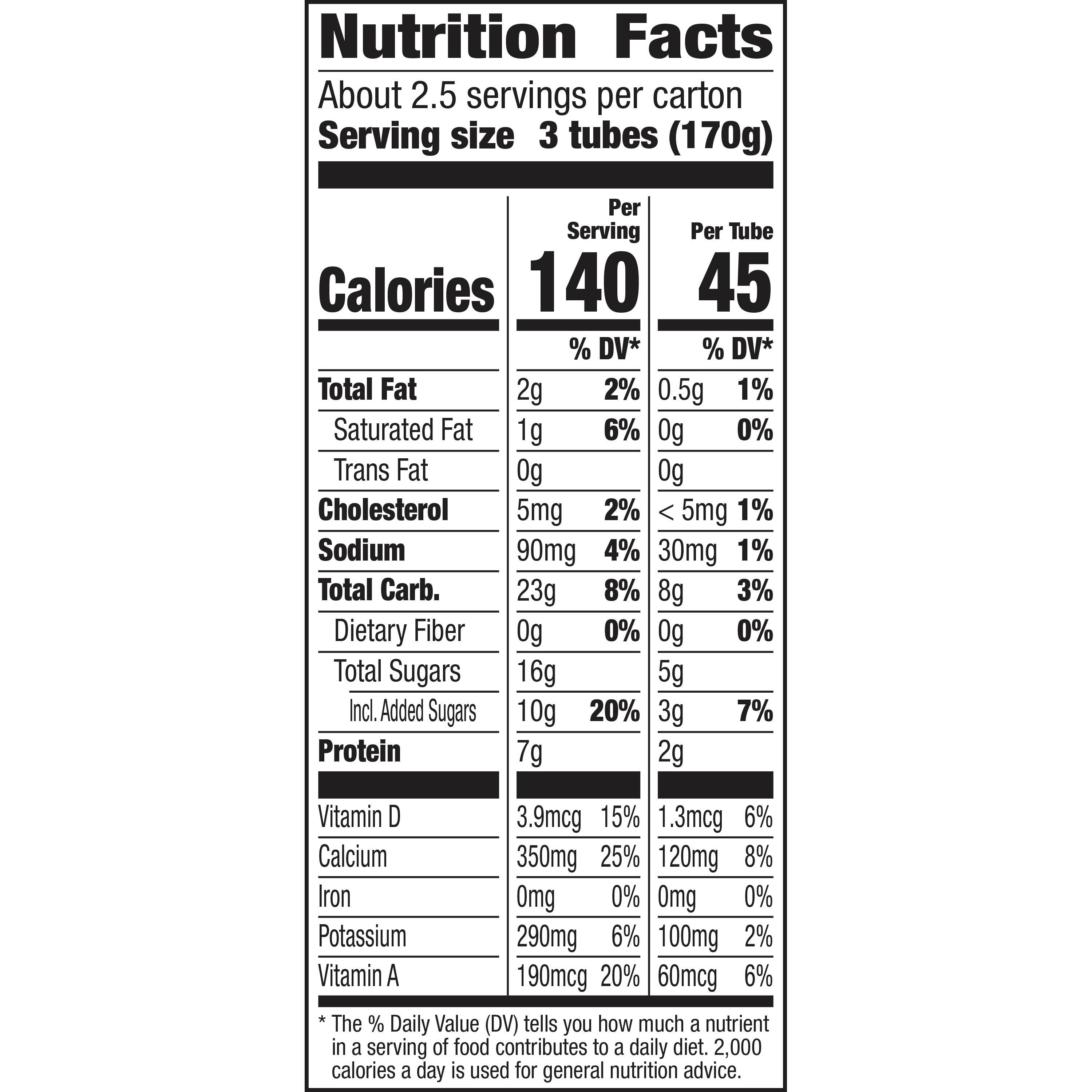 Buying Guide Reviewed by Nutritionist - mybest Epigamia Greek Yogurt is a high protein, low-fat Greek yogurt variety. The fat content of this Greek yogurt is only 2.56g per 100 grams. If you are trying to lose weight, this yogurt is the best choice as it contains no added sugar. The protein content of Greek yogurt is comparatively higher than regular yogurt. Gogurt Nutrition Facts, Ingredients, Health Benefits - TipsFu Gogurt Nutrition Facts Nutrition Facts servings per container Serving size 3.00 tubes (170g) Amount per serving Calories 150 % Daily Value* Total Fat 1g 2% Saturated Fat 0.5g 3% Trans Fat 0g Cholesterol 5mg 2% Sodium 75mg 4% Total Carbohydrate 29g 10% Dietary Fiber 0g 0% Total Sugars 22g Includes 18g Added Sugars 36% Protein 6g Vitamin D 3.3mcg 17% Yoplait Calories and Nutrition Facts - Restaurant Meal Nutrition Yoplait Calories and Nutrition Menu. Whips! Strawberry Greek 100 Yogurt. Whips! Cherry Cheesecake Lowfat Yogurt Mousse. Whips! Coconut Creme Yogurt Mousse. Whips! Orange Creme Lowfat Yogurt Mousse. Go-Gurt Yoplait Go-Gurt, Low Fat Yogurt, Solarberry Banana & Rocketship ... Buy now and save $2.39 each. Product Details Yogurt, Low Fat, Solarberry Banana/Rocketship Raspberry, Value Pack Yogurt, Low Fat, Solarberry Banana/Rocketship Raspberry, Value Pack *EBT Eligible UPC: 00070470187419 Nutrition Facts Customers Also Bought Similar Products Fresh Strawberries