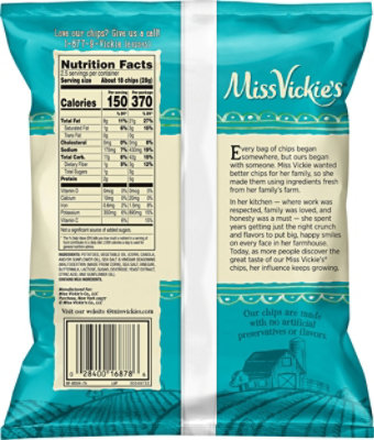 Sea Salt & Vinegar Flavored | Miss Vickies Sea Salt & Vinegar Flavored. Description. Tangy vinegar seasoning with sea salt—this is a farm-inspired take on a classic. Nutrition Facts. Serving size. 1 package. Calories. 200 % Daily Value* Total Fat 11g. 15%. Saturated Fat 1.5g. 8%. ... however, we recommend you check the label on a specific product for the most current and accurate ... Salt and Vinegar Potato Chips - Allrecipes salt to taste Directions Put potato slices in a large bowl. Pour enough cold water over the potatoes to cover completely. Soak potatoes, gently agitating every 10 minutes, for 30 minutes; drain. Spread potatoes slices onto paper towel; pat dry with more paper towels. Mix vinegar and 1 cup cold water in the large bowl; add potatoes.