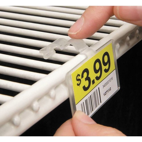 Pack of 100 – Plastic Wire Shelf Label Holder, Sign and Ticket Holder, Easy Clip Design with Tight Snap Lock Closure. Height, 1-1/4" X Width, 3" | 100 ...
