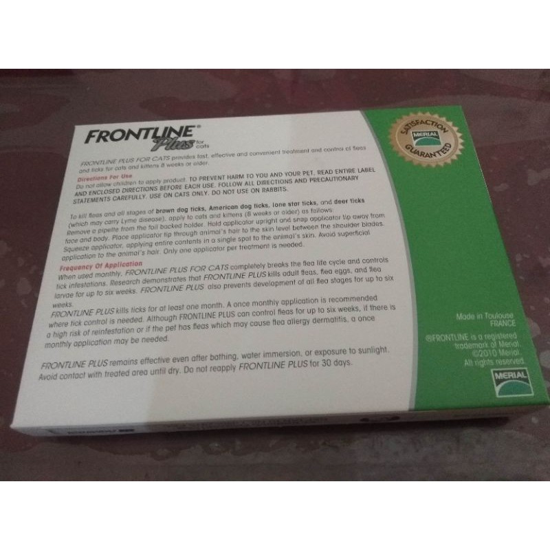 Product Label for Merial Frontline Plus for Cats - FleaScience NET CONTENTS: 1-0.017 fl oz (0.50 mL) applicator ... a manner inconsistent with its labeling. Do not ... FRONTLINE Plus kills adult fleas, flea eggs, and.