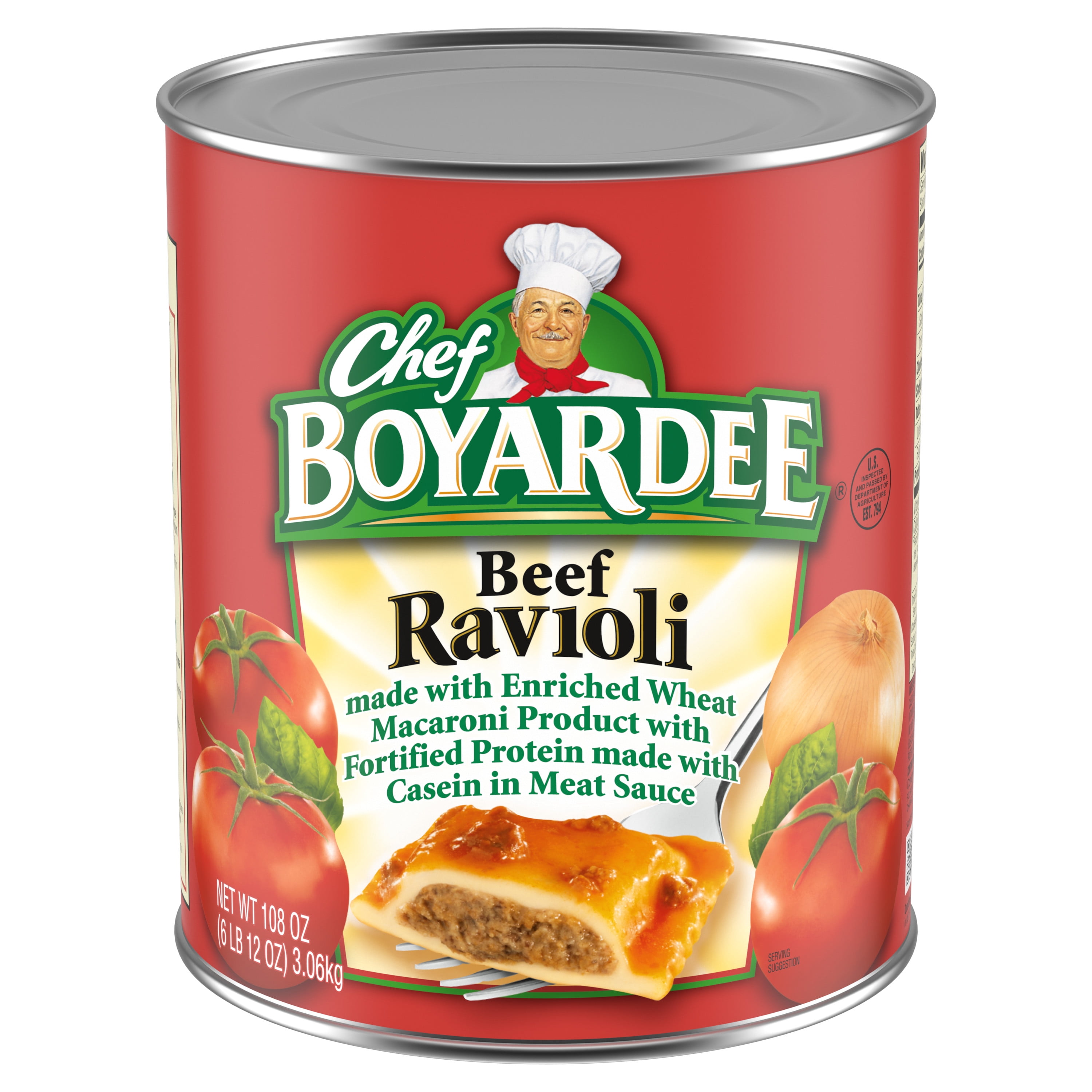 Chef Boyardee Beef Ravioli, 108 oz - Kroger Chef Boyardee Beef Ravioli is a classic crowd-pleaser and our extra-large 108-ounce can make it easy to feed a crowd! This size is perfect for any large ...